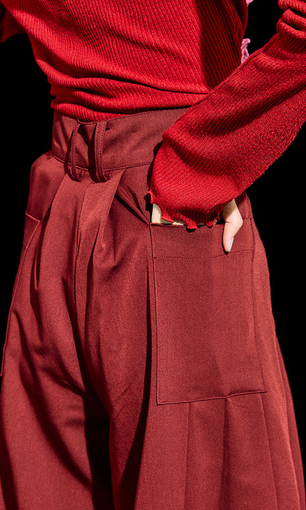 ワイド プリーツ パンツ(バーガンディ)