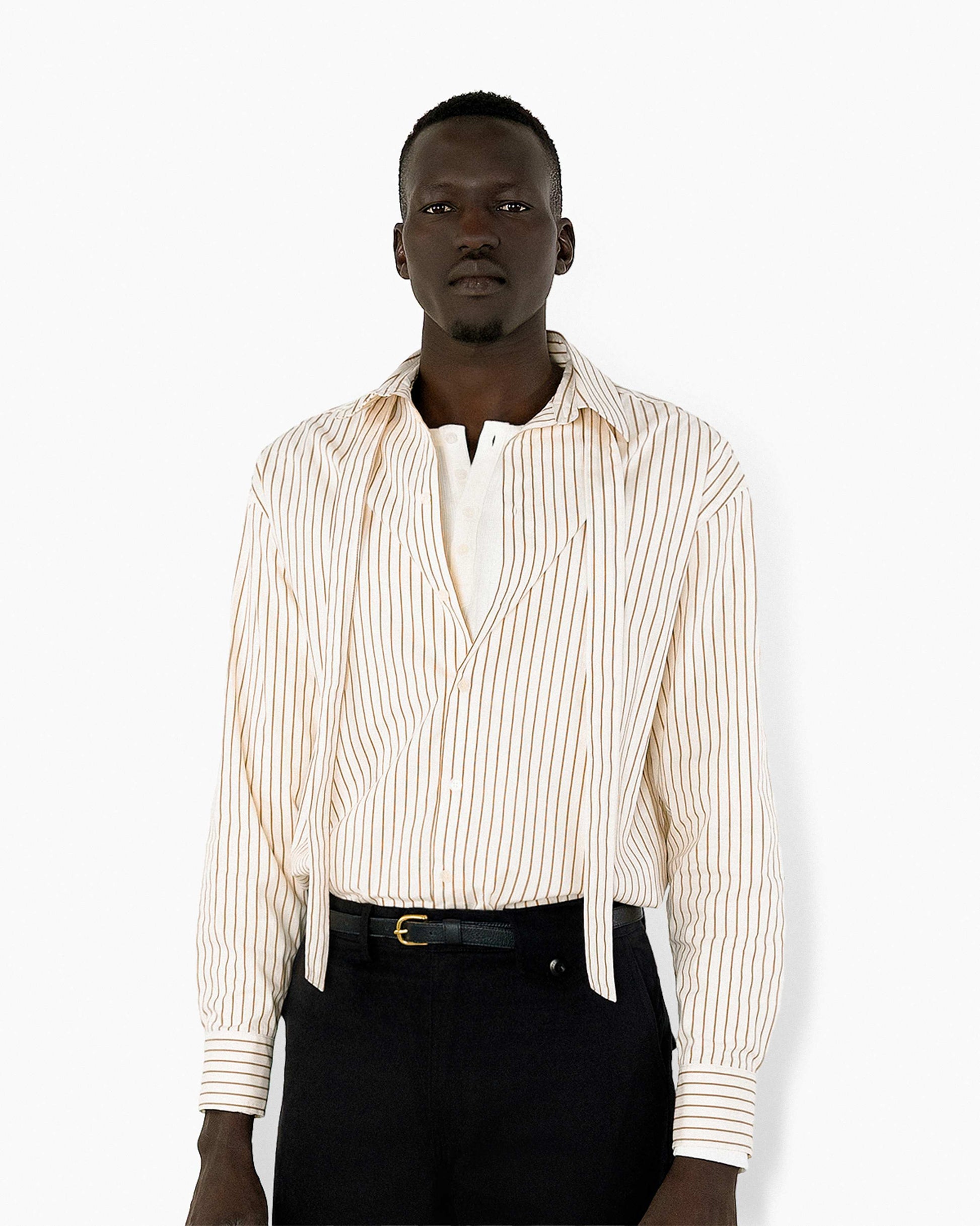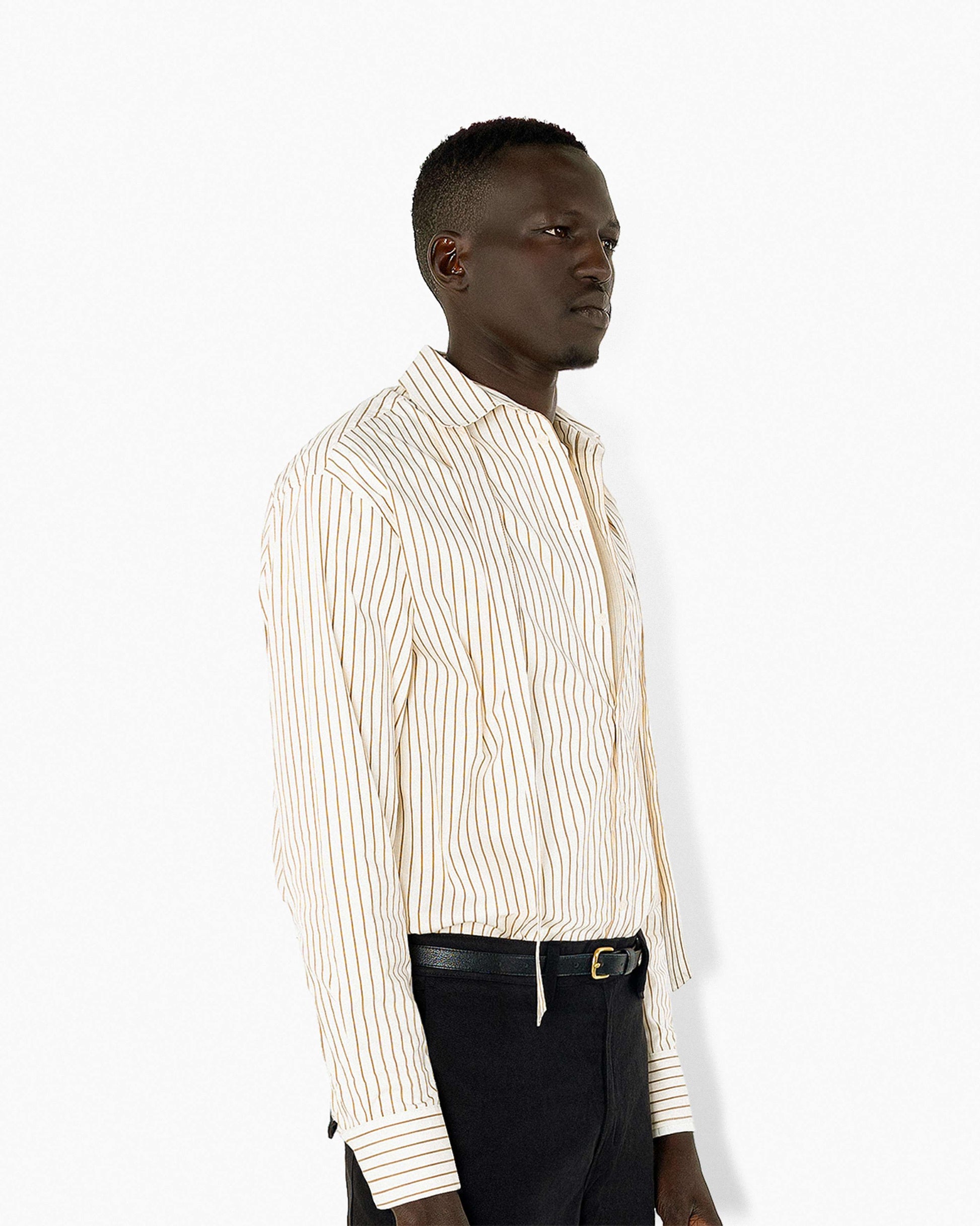 レビュ―ラ ブリエ ピンストライプ シャツ(ブラウン)