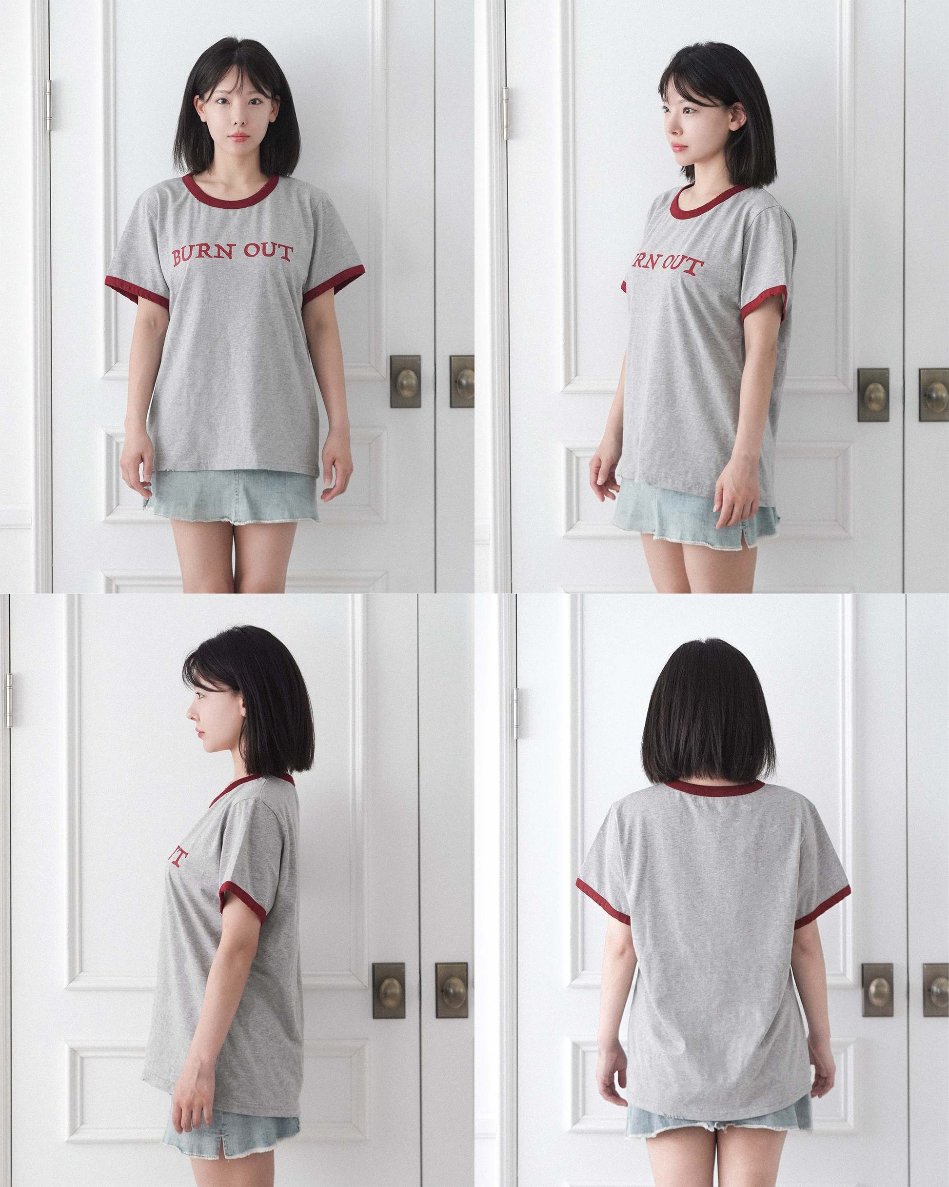 【REVURA レビュ―ラ】BURN OUT FRAY RINGER T-SHIRT GRAY / RED - UNISEX