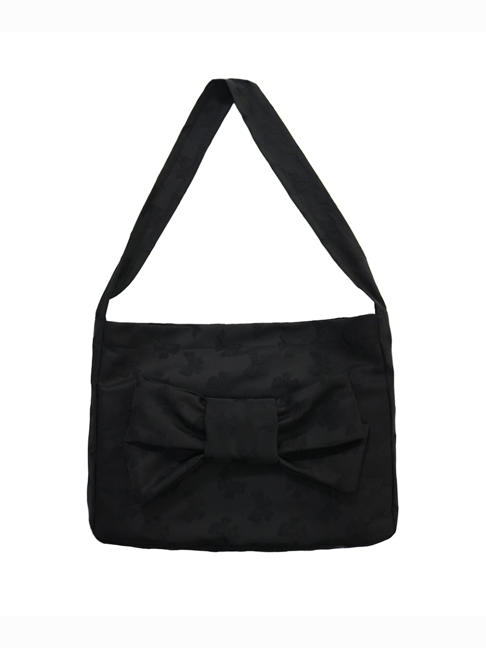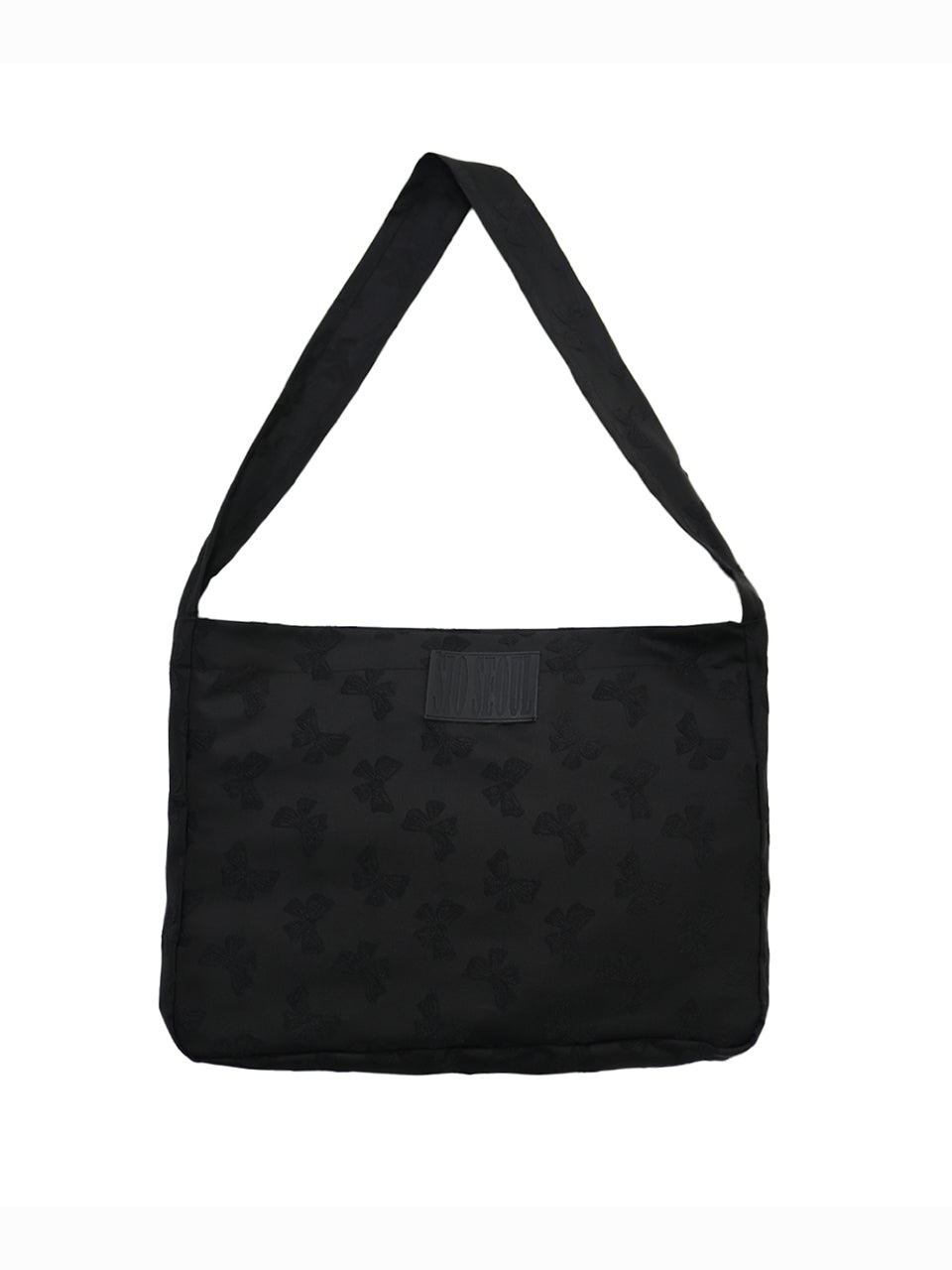 RIBBON JACQUARD SHOULDER BAG-BLACK
