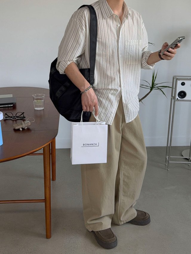 ワイドパンツと合わせて、抜け感のある韓国ミニマルスタイルに。