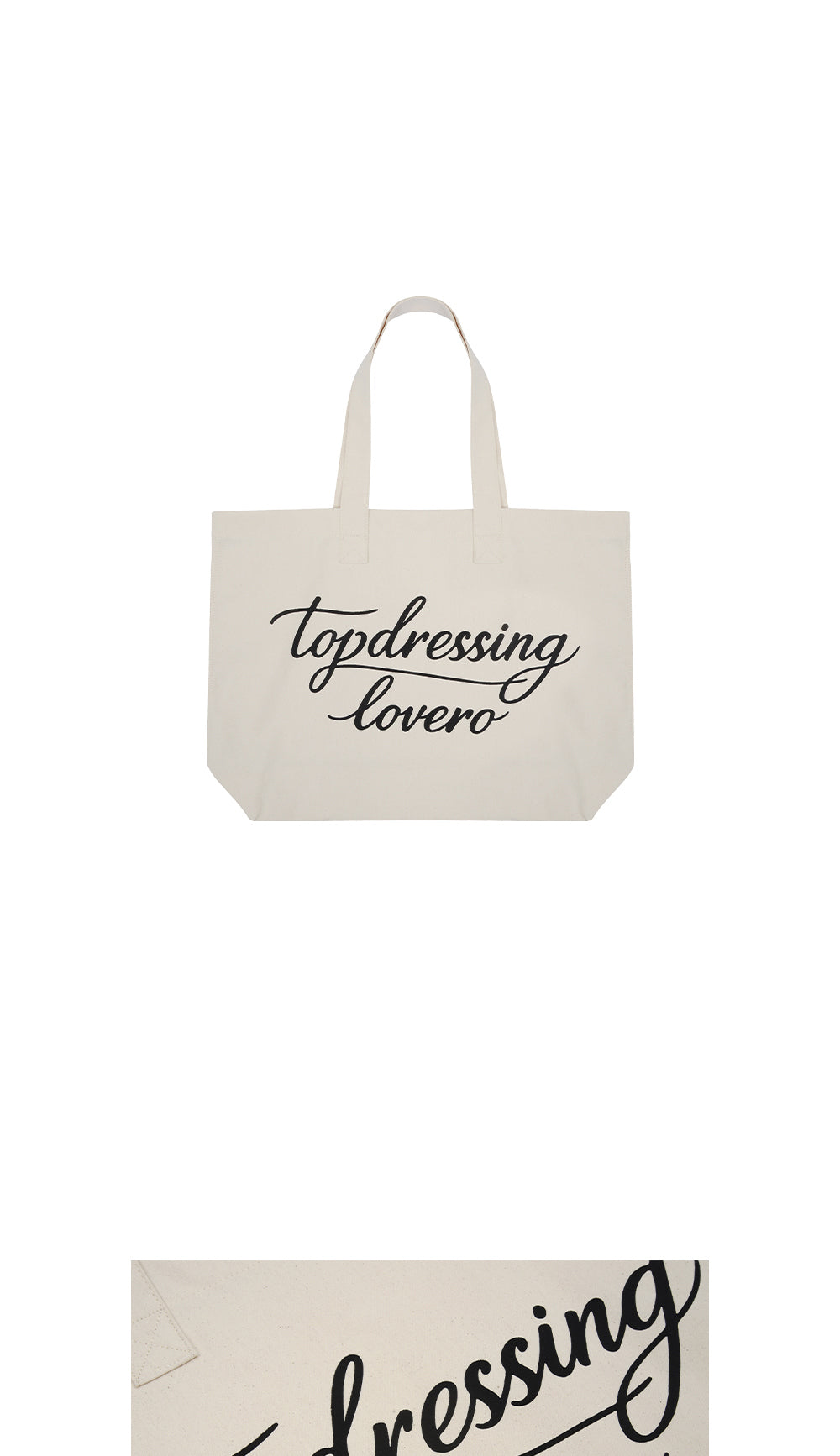 TOPDRESSINGの「Top Lovero Bag(トップラベロバッグ)」は2026SS新作のカジュアルトートバッグ。ロゴレタリングデザイン×大容量でデイリー使いに最適。IVORYの1色展開。韓国バッグ・韓国ファッション通販WooStoreで正規取り扱い中。