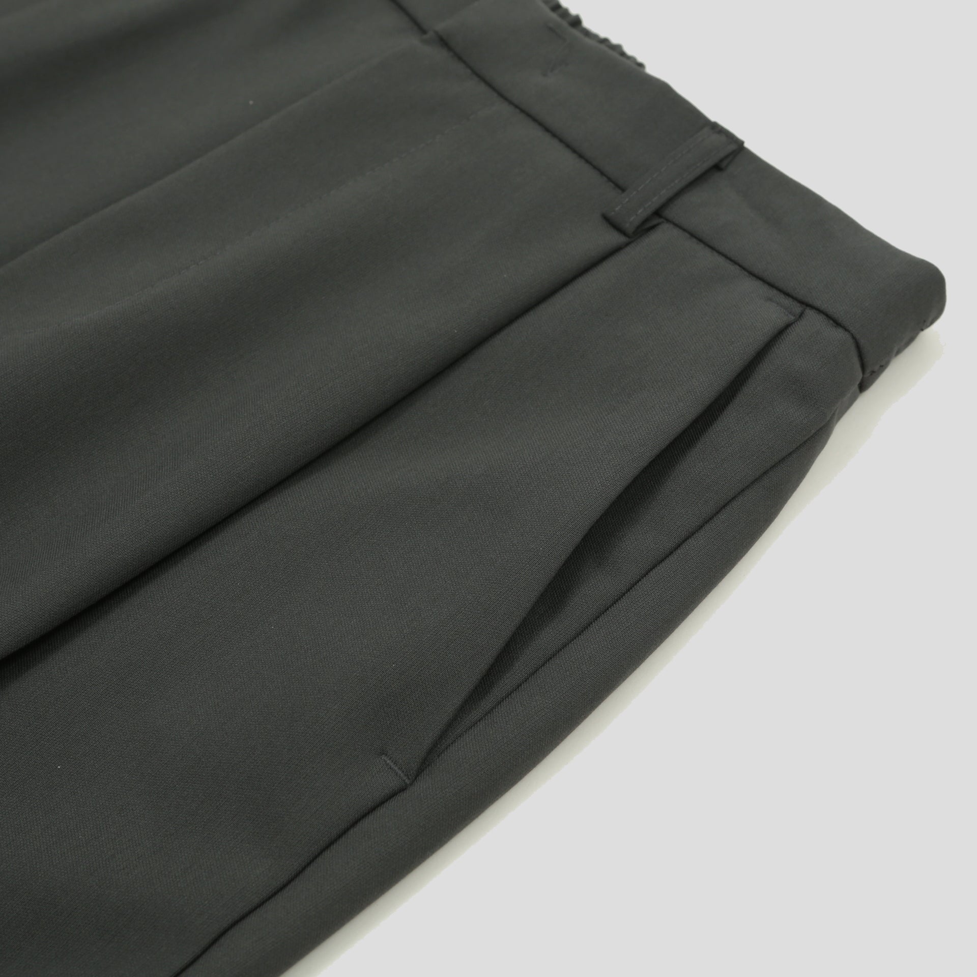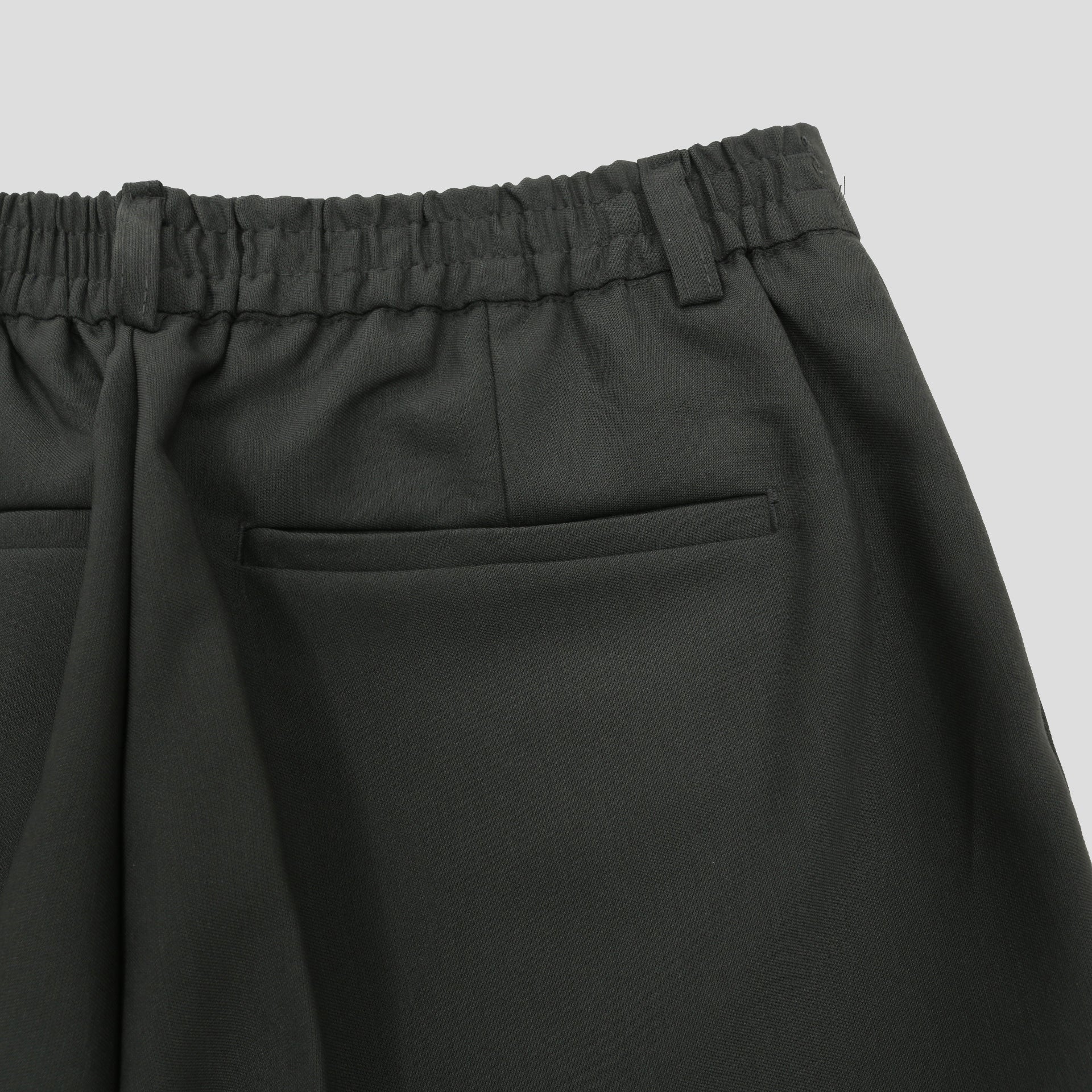ポリエステルにレーヨンをブレンドした滑らかな素材に、ストレッチ性を加えることで、動きやすさと快適な履き心地を実現。動くたびに生まれる自然なドレープが、スタイリングに奥行きを与えます。