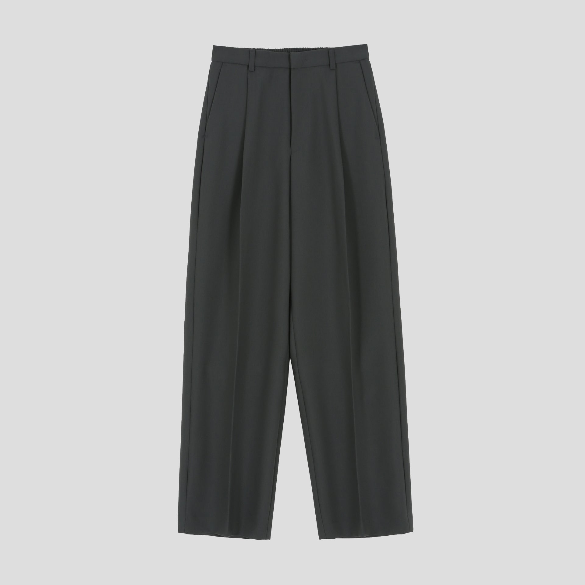余白を残すように設計された、ワイドストレートシルエットのミニマルスラックス。
